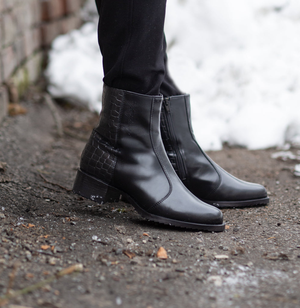Turn heads with a stunning ankle boot that combines a beautiful silhouette & all-weather-material.